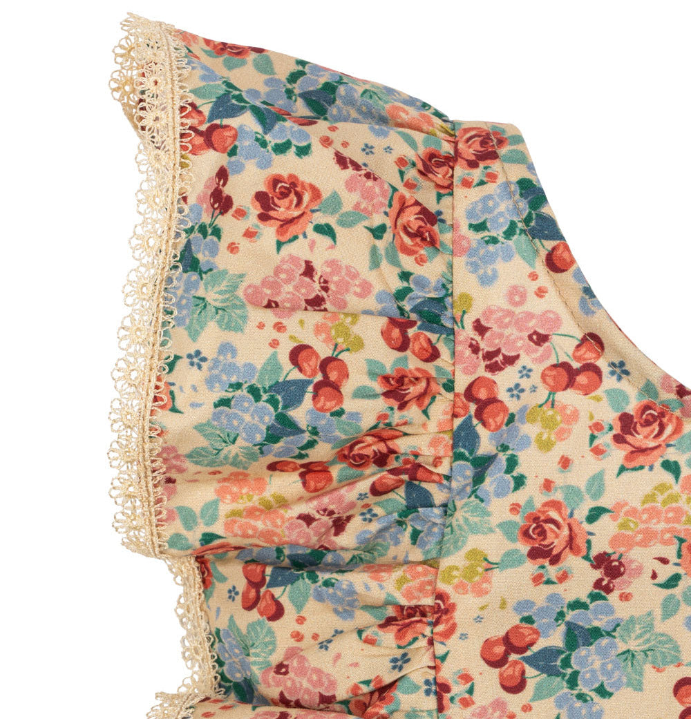 Soft summer dress made from 100% organic cotton. The dress is designed with frill straps that have delicate lace detailing, a low cut back, and a flared skirt. GOTS, Organic, certified by CU1094701