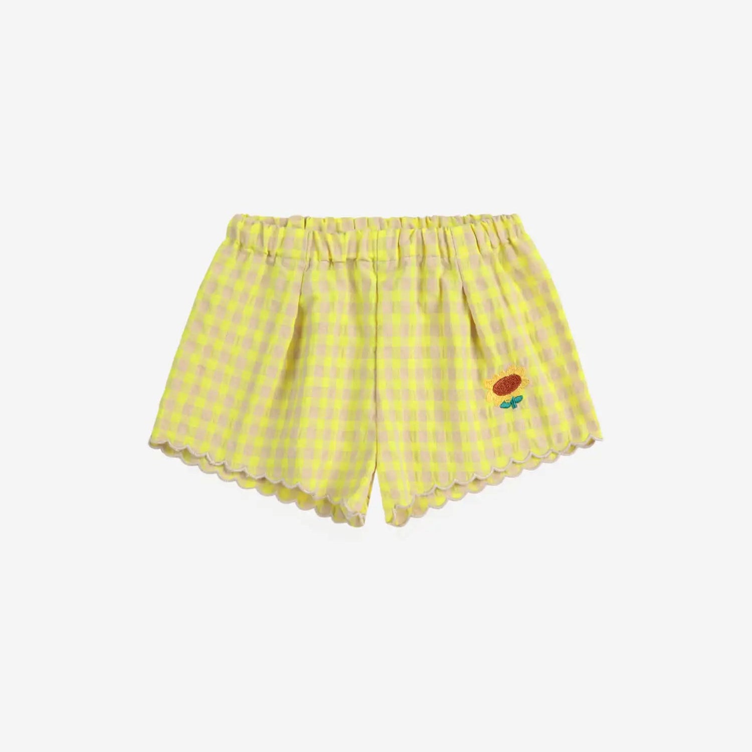 Made from 60% cotton and 40% recycled polyester, they feature a seersucker weave for a unique look. The elasticated waistband ensures comfort, while embroidery details add charm to the relaxed fit.