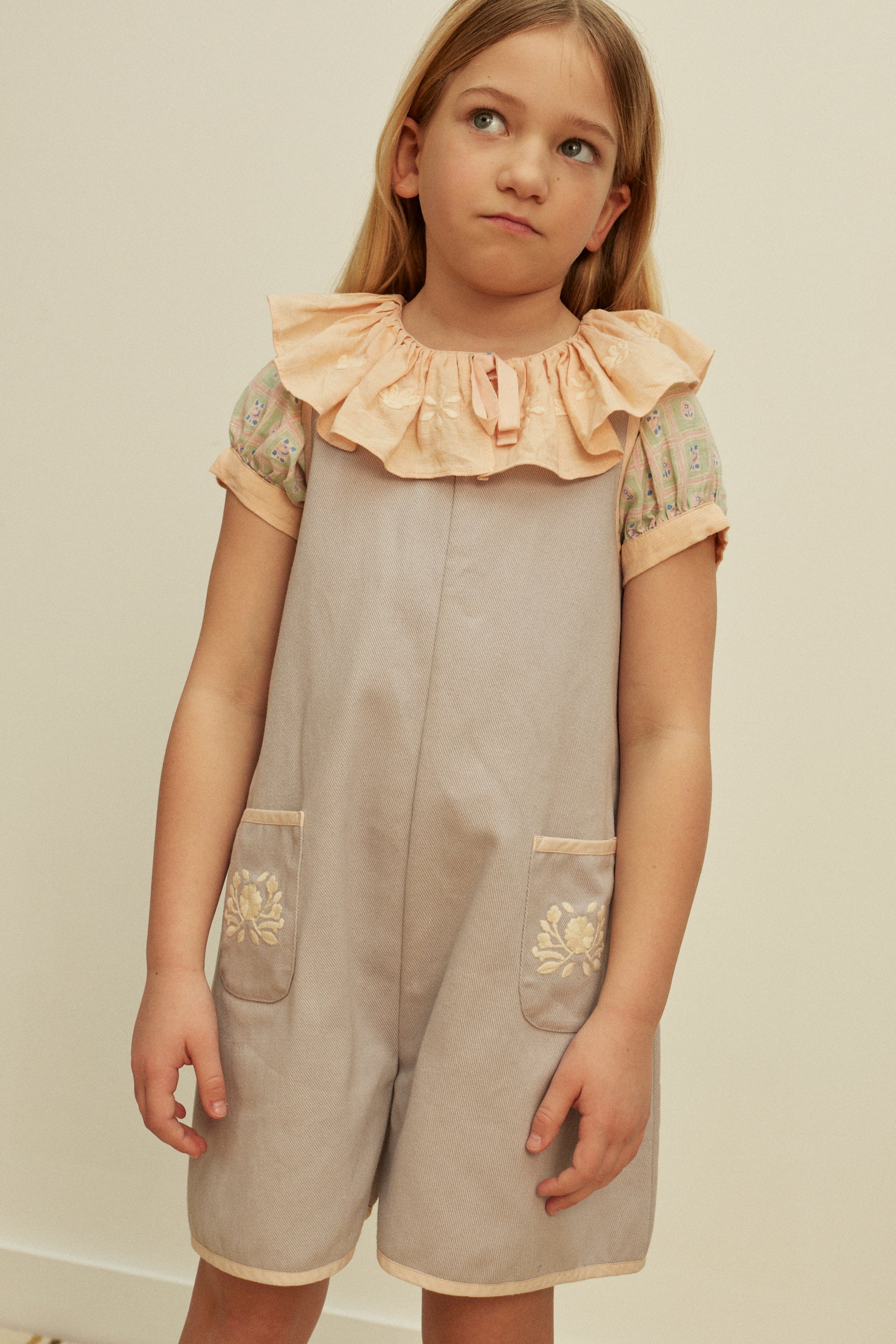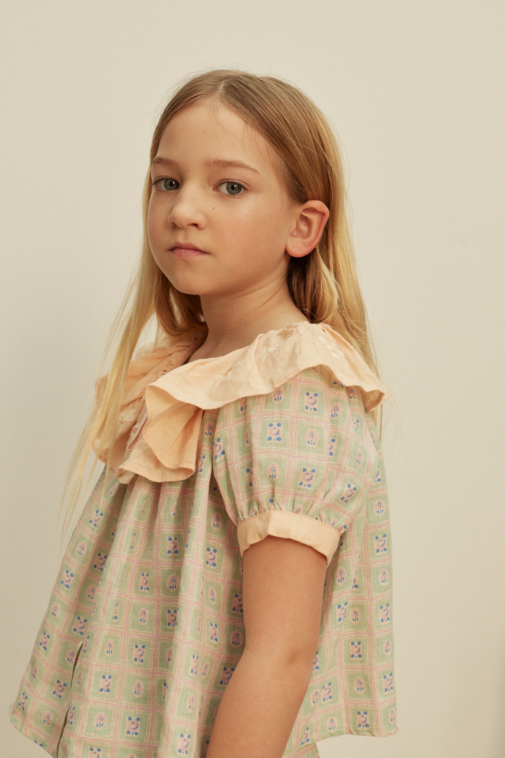 The delightful Zabina blouse comes in our vintage-inspired ‘rosepanel’ print linen. Featuring a special embroidered frill collar in contrast ‘satin pink’, with a soft cotton herringbone ribbon detail at neckline, and contrast binding at sleeves. Button through front. Zabina brings a dreamy retro mood – we love her worn with our shorts styles and under our Vada playsuit.